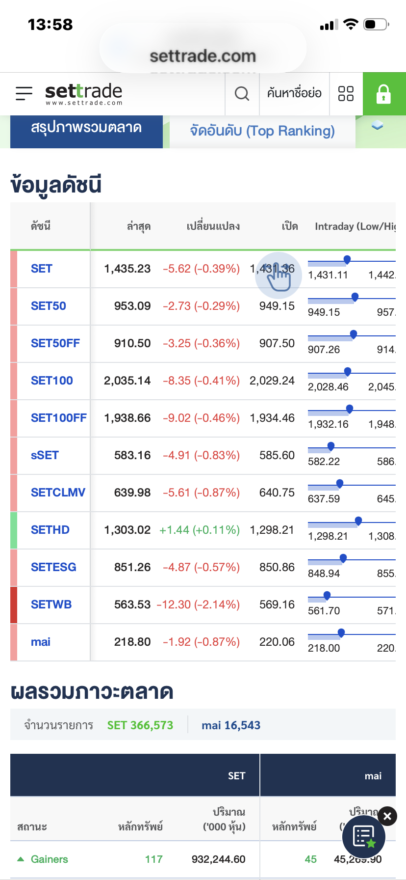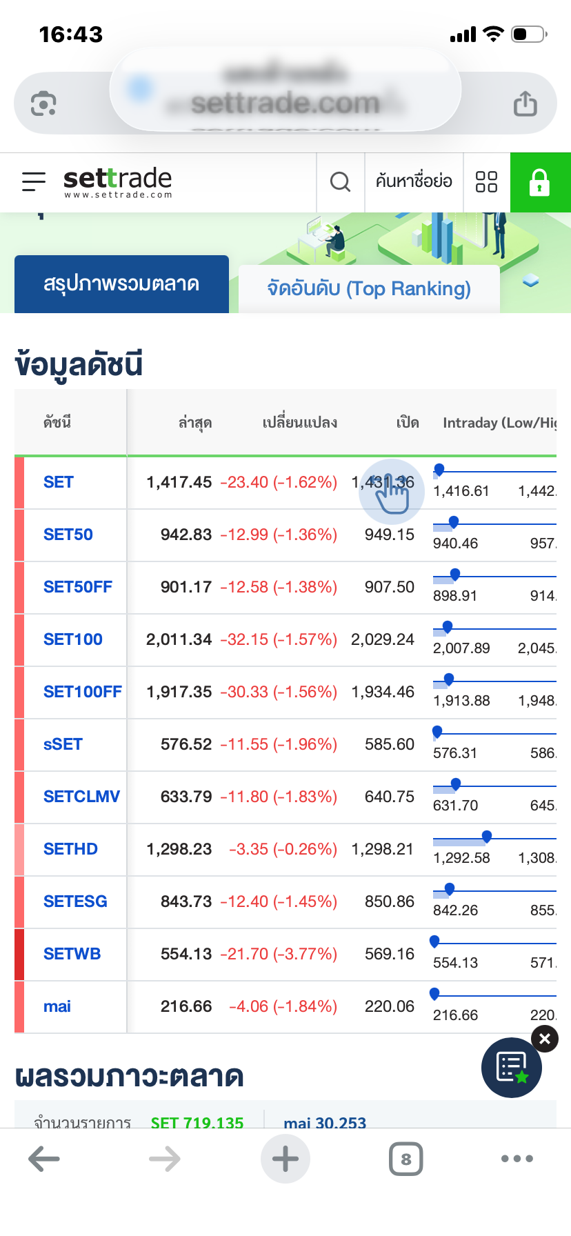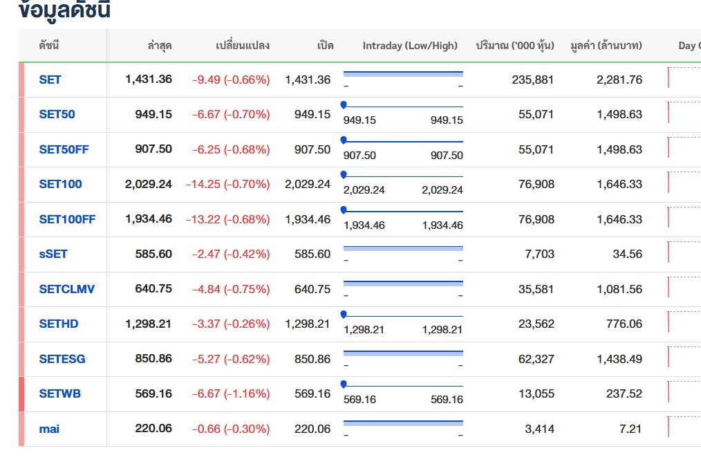รายงานผลหุ้นไทย