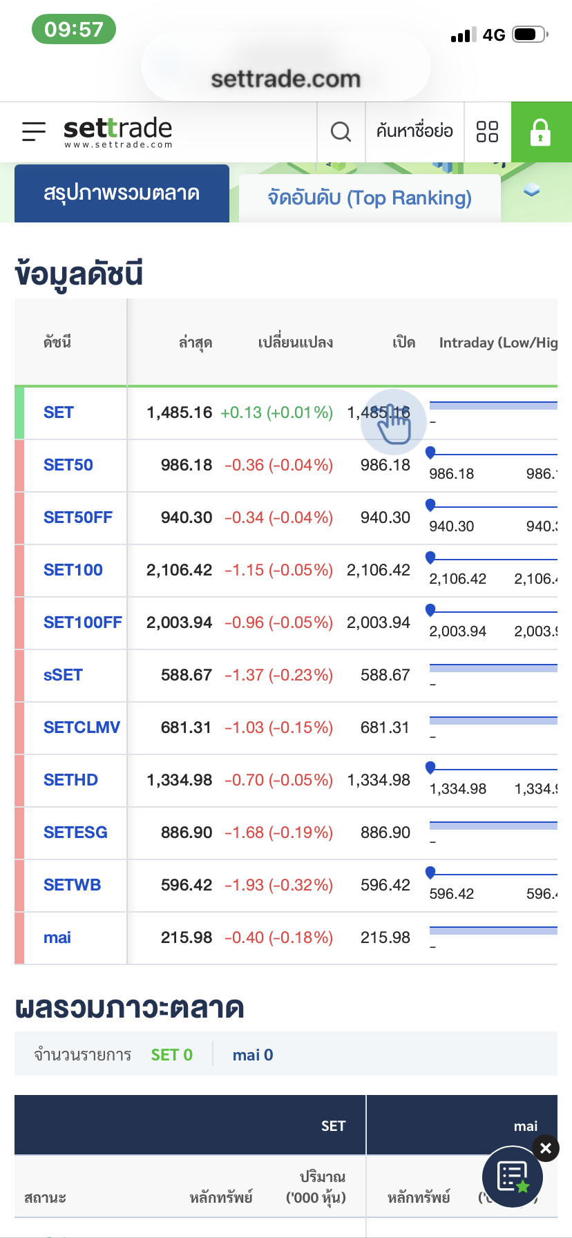 รายงานผลหุ้นไทย